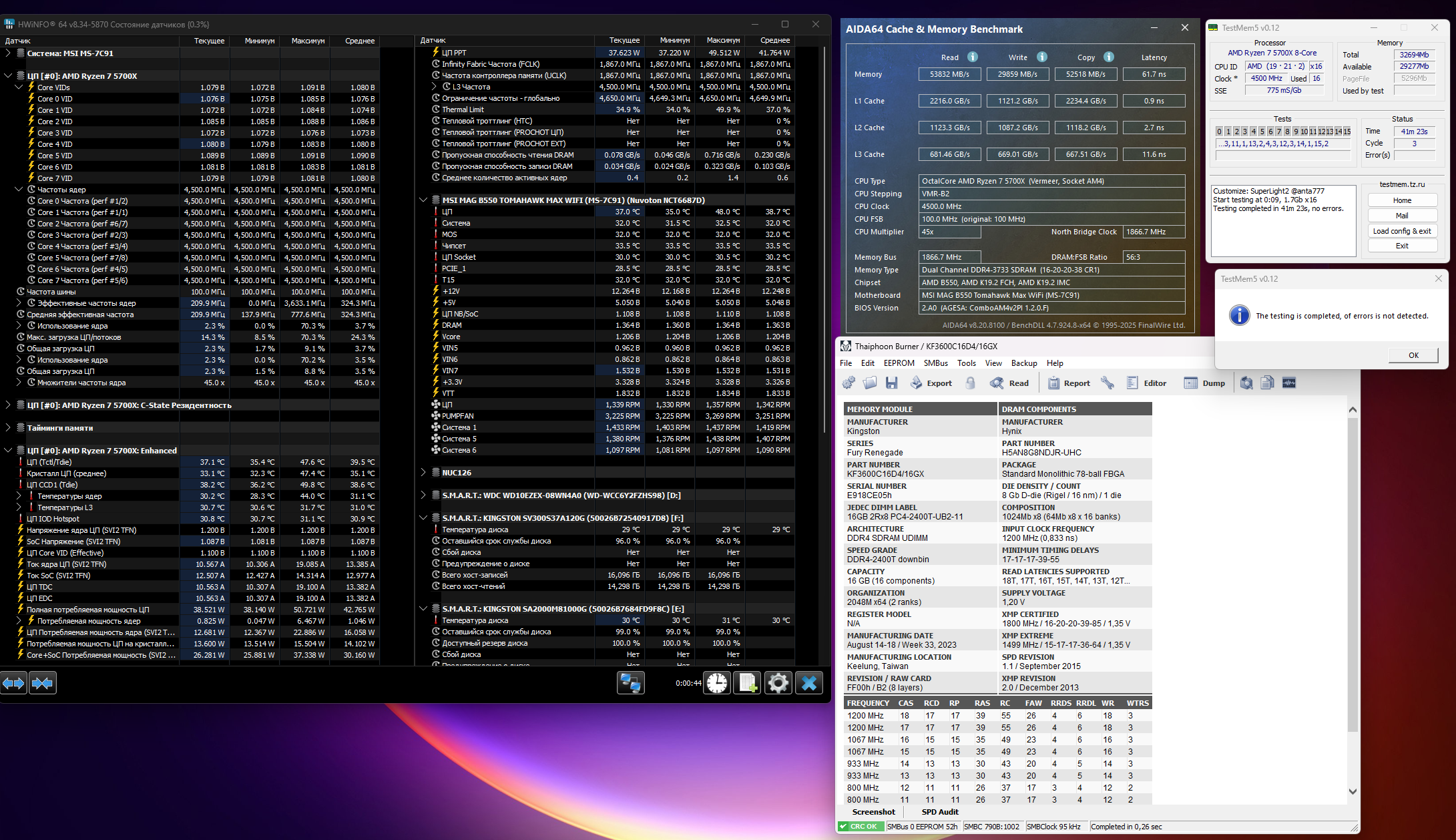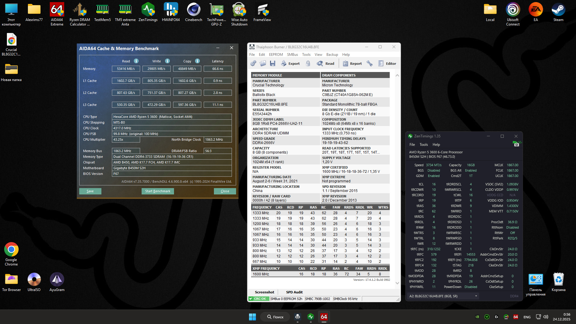Обновился с 2x8 Ballistix 3000 на 2x16 Kingston Fury Renegade 3600 mhz По наставлениям MadMaxx получилось вот такое дело.