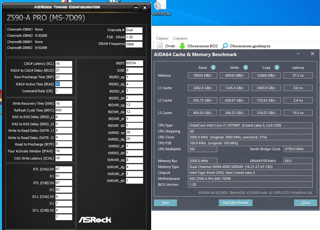 Память Kingston Fury Renegade 4600MHz на чипах Hynix cток, разогнал до 4700MHz 18-25-25-45-570 1.55v + i9 9900k cток. Далее не едет, а вообще на z590 чипсете может 5000MHz взять.