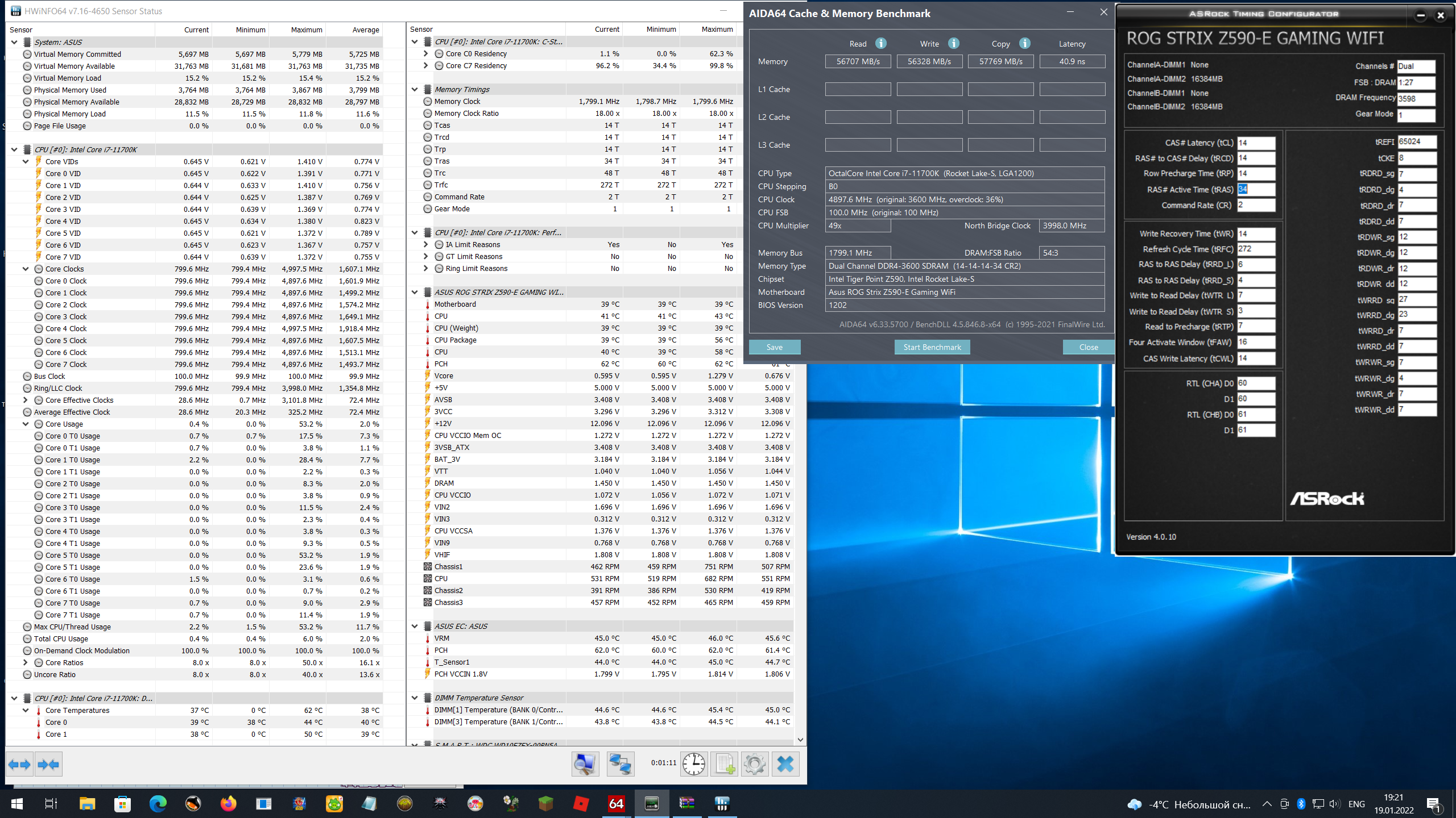 tRC≤64, tRC=tRAS+tRP, выше - теряется производительность, что видно на ваших скринах, поищите тут в ветке, даже 4133-4200 с правильными таймингами будут быстрее (кроме записи).