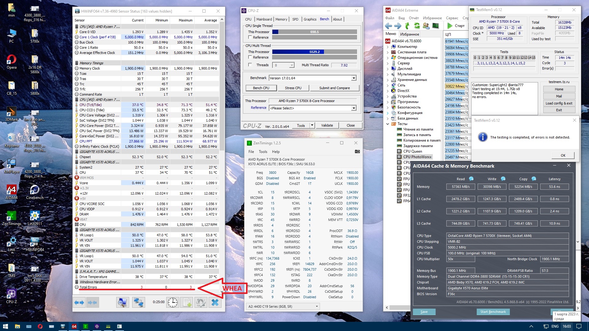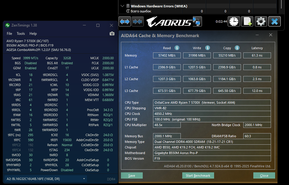 хорошая память досталась! только здесь задирать память выше 3800 IF1900 смысла нет, из-за гарантированного WHEA. запусти аидовский тест кеш-память совместно с hwinfo64 - увидишь..