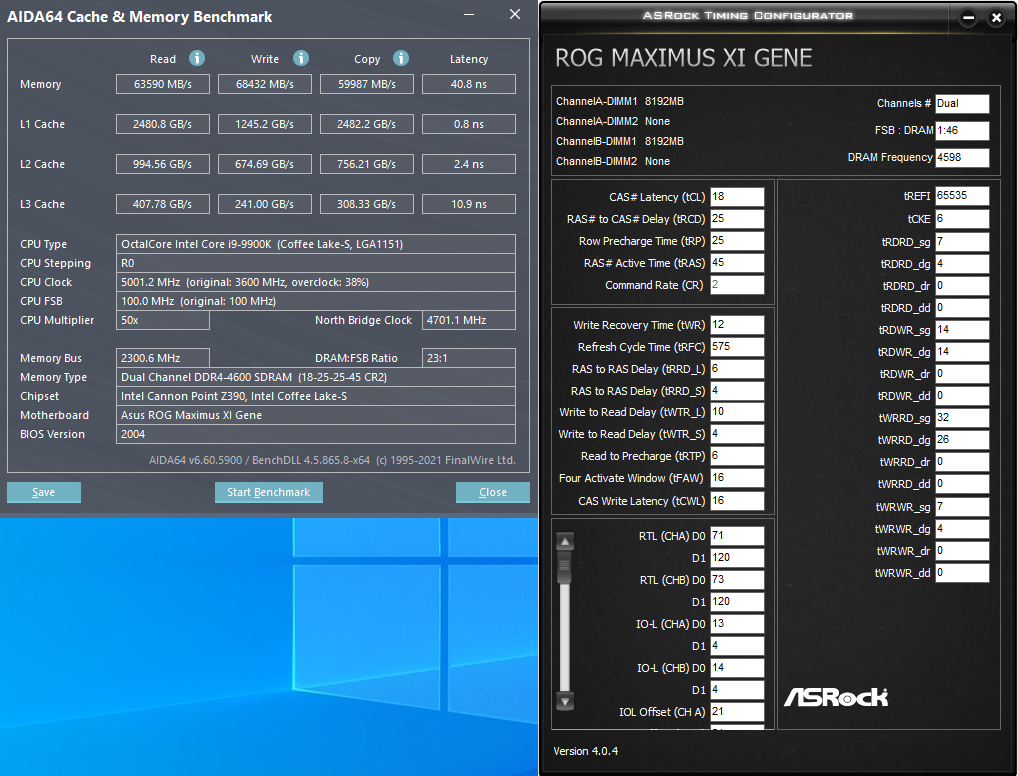 Железо: i9-9900K, ASUS ROG Maximus XI Hero, 2x16Gb G.Skill F4-3200C14D-32GTZR Для запуска выставлял IO\SA = 1.25, сама память = 1.45. Проц был не в разгоне. Только сняты лимиты. Биос полностью настроен по гайдам, версия актуальная.