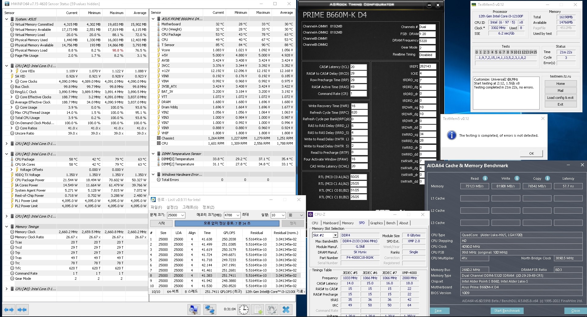 Если быть очень внимательным то видно SA Vid - Не реальный SA а запрашиваемый контроллерами для их работы с определенной частотой RAM К сожалению показаний истинного SA не завезли на асус b660 ( а возможно из-за залоченого камня в материнке. Не знаю.). Но все равно впечатляет. Для такой высокой частоты нужно только 0.93в. Даже на частотах выше там я не упираюсь в потолок который легко нащупать уже на 3600 в Gear 1. Если видишь макс SA Vid - 0.96в в простое на залоченом Алдерлейке - Ты уже на грани. Мем тесты покрутить можно но в линксе нащупаешь ошибку.