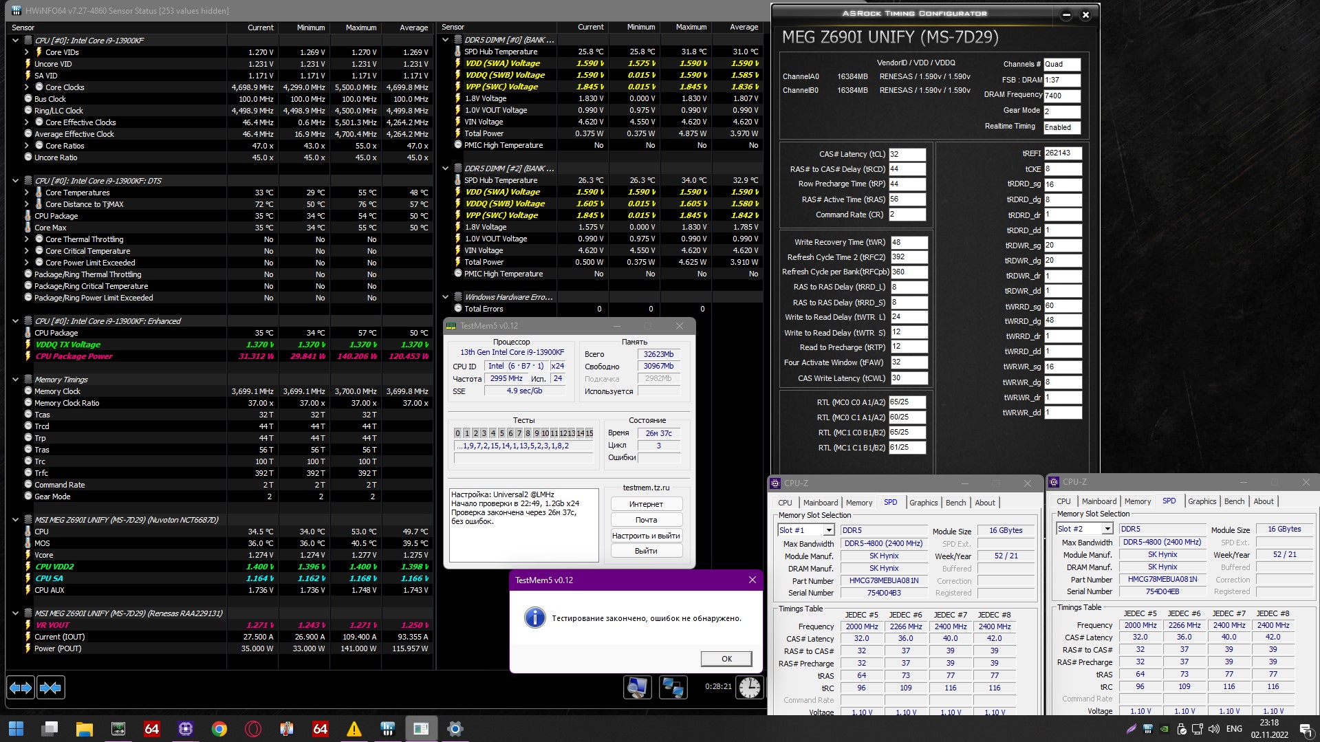 Убедил не буду сдавать!) Сейчас получил такие результаты: CPU: SA 1.2 VDDQ 1.25 VDD2 1.4 RAM: VDD/VDDQ 1.4 Прогнал МТ 1-11 тесты, 4 цикла (1.5ч) без ошибок Пробовал понижать CPU VDDQ до 1.2 МТ на третьем цикле выдал ошибку по одной плашке. Дальше тест остановил.