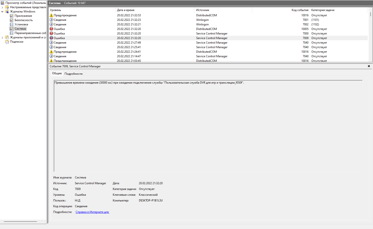SimoraA В стоке тоже бывают приключения на 30хх. Карта 10хх, как в профиле указано? Может, "подсела"? Ну да ладно. приведенные события уже после логона - загрузки. Надо смотреть до. Надо ткнуть в самый верх - "просмотр событий (локальный)", там в сводке административных событий выбрать "критический", и смотреть. Если проц/память, то будет скорее всего 41 код с описанием бла-бла.