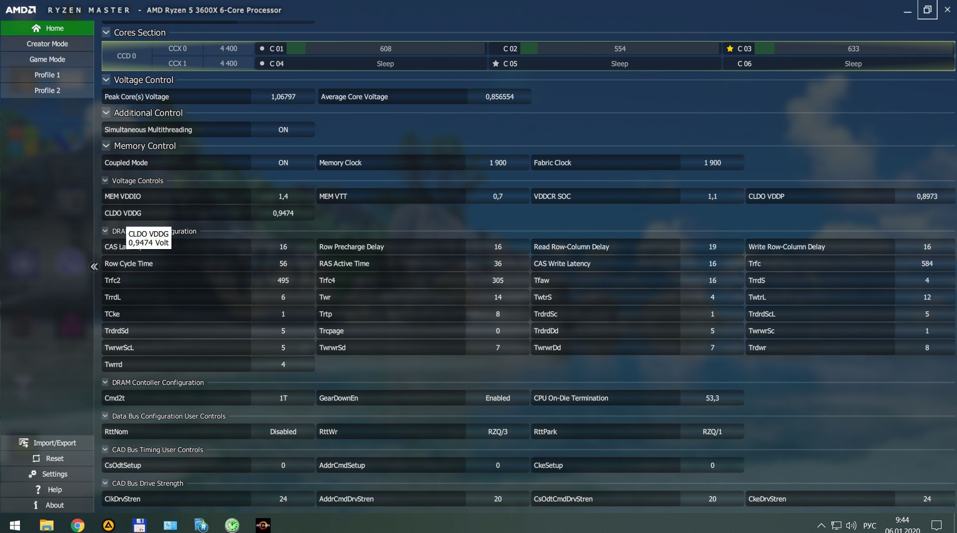 Здравствуйте,хотел бы уточнить пару моментов про разгон ОЗУ. Имеется память Samsung [M378A1K43BB2-CRC] 2х8. Материнка asrock b450 pro4, проц r5 2600x (4ггц 1.275v). Делал все по гайдам с драм калькуляторами и прочим,никакие значения из профилей с Samsung B-die не стабильны(либо вообще не стартуют,либо после пары прогонов мемтест5 выдают ошибки),не safe не fast (пробовал от 3200 до 3400). Из напряжений менял только dram voltage от 1.3 до 1.4 и soc voltage от 1.025 до 1.050. На профилях samsung oem вроде как работает все, но скорости никакие. Находил свою же память в таблице и люди брали частоты 3466 с таймингами 14-14-15-14-28-42-1T, я же не могу с такими таймингами на частоте 3200 просто загрузиться. В чем может быть дело?
