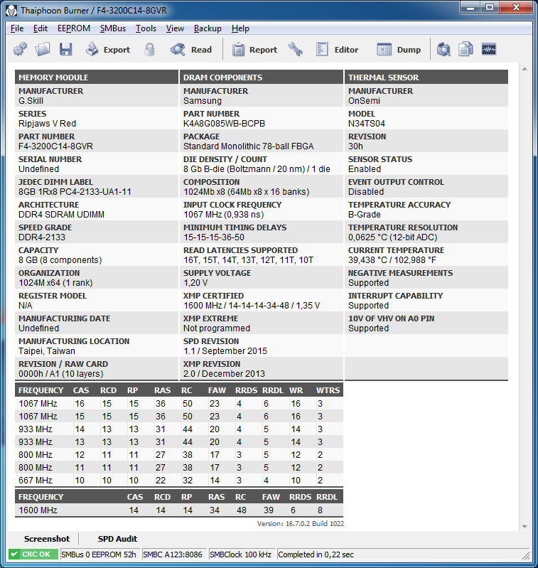 [img]Ссылка на скрин[/img] Для сбора статистики по установленным чипам памяти просьба прикладывать скрины программы Taiphoon Burner и указывать напряжения на DIMM, IO и SA![/color]