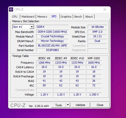CPU Name: Intel® Core™ i7-7740K CPU @ 4.30GHz Motherboard Model: MSI X299 GAMING PRO CARBON AC (MS-7A95) Total Size: 8192 MB Type: Single Channel (64 bit) DDR4-SDRAM Frequency: 2750 MHz - Ratio 1:31 Timings: 21-31-31-63-2 (tCAS-tRC-tRP-tRAS-tCR) Slot #1 Module: G.Skill 8192 MB (DDR4-2137) - XMP 2.0 - P/N: F4-3200C14-8GVR