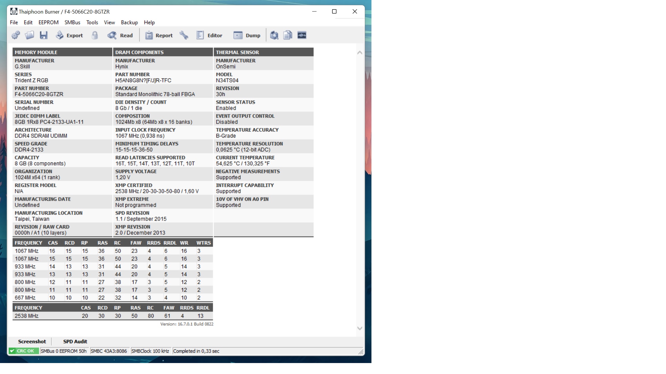 [img]Ссылка на скрин[/img] Для сбора статистики по установленным чипам памяти просьба прикладывать скрины программы Taiphoon Burner и указывать напряжения на DIMM, IO и SA![/color]