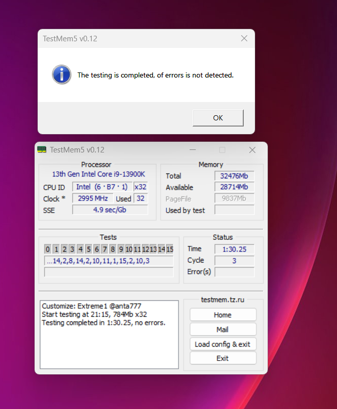 ASUS Z690-F gaming (bios1304), G.Skill 6000 cl36 2x16gb (Samsung), core i7 12700k. выдув радиатора СЖО прямо над памятью. Пока выставил на 6200мгц (на 6400 давал ошибки), тайминги не трогал. Напряжения дал с запасом: vddq, vddq, cpu vddq 1.39 cpu sa 1.25