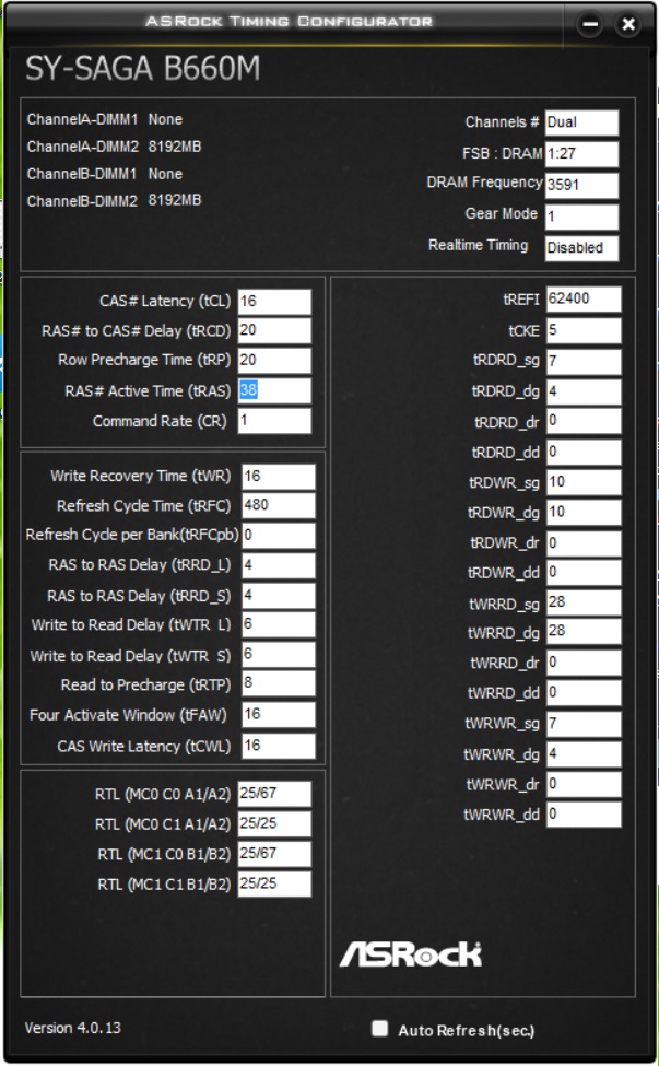 Всё чего добился я с Hynix DJR и Gear 1... Может что-то можно ужать? Уменьшение tRCD на единицу даётся слишком дорого - напряжение приходиться с 1,35В повышать до 1,43В. Тайминг WTRS(L) ниже 6 почему-то в БИОСе ставится, но в Асрок-калькуляторе всё равно 6.