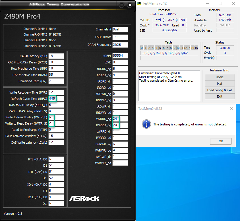 Кто подскажет, хочу разогнать товарищу балистики BL8G32C16U4R. Чтобы не выжимать из неё по хардкору и тратить кучу времени на тесты, какую частоту и первичные она стабильно возьмёт под процессором 9600к и доска AsRock Z390 extreme4. Там пока настроено 3333 16-18-18-38 и затюненные вторичные и третичные. С теми же таймингами и частотой 3600 посыпались ошибки. На 3866 с завышенными первичками под разгон и остальное в авто, почему-то вообще не стартануло. Естественно тренировку включал и вольтаж повышал.