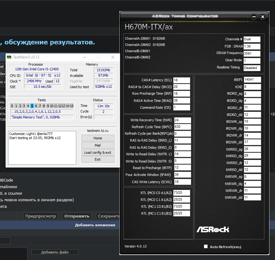 Прошу помощи по разгону. Перешел с AMD на Intel в этом году, опыта разгона нет, на AMD более менее умел. Плата AsRock H670M ITX. Камень 12400 H0. Память Crucial Ballistix на Micron E-die. 1. Я правильно понимаю что в Gear 1 я могу ставить максимум 3600mhz? 2. Вот каких результатов удалось достичь на 3600 по таймингам, крутил только первичные, остальное на авто. Пробовал 16-19-16-36 - синий экран в винде сразу, на амд работало, но там по калькулятору и вторичные выставлял. Легкие тесты прогнал, все ок.