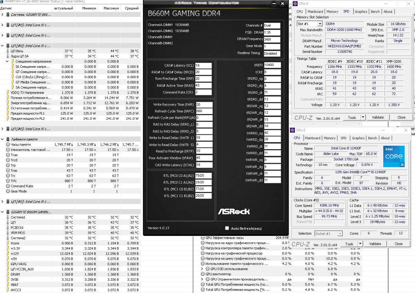 Форумчане помогите пожалуйста разогнать память 2х16Гиг Hikvision 16Gb DDR4-3200MHz (HKED4161CAB2F1ZB1/16G) чипы микрон, 12400F и плата Gigabyte B660M gaming ddr4 запускается в gear 1 на 3500Мгц только если всё в авто стоит, я в этом деле сильно дубоват вы тут спецы и профи в этом помогите чем можете, плата автоматом какие то конские вторички выставляет.