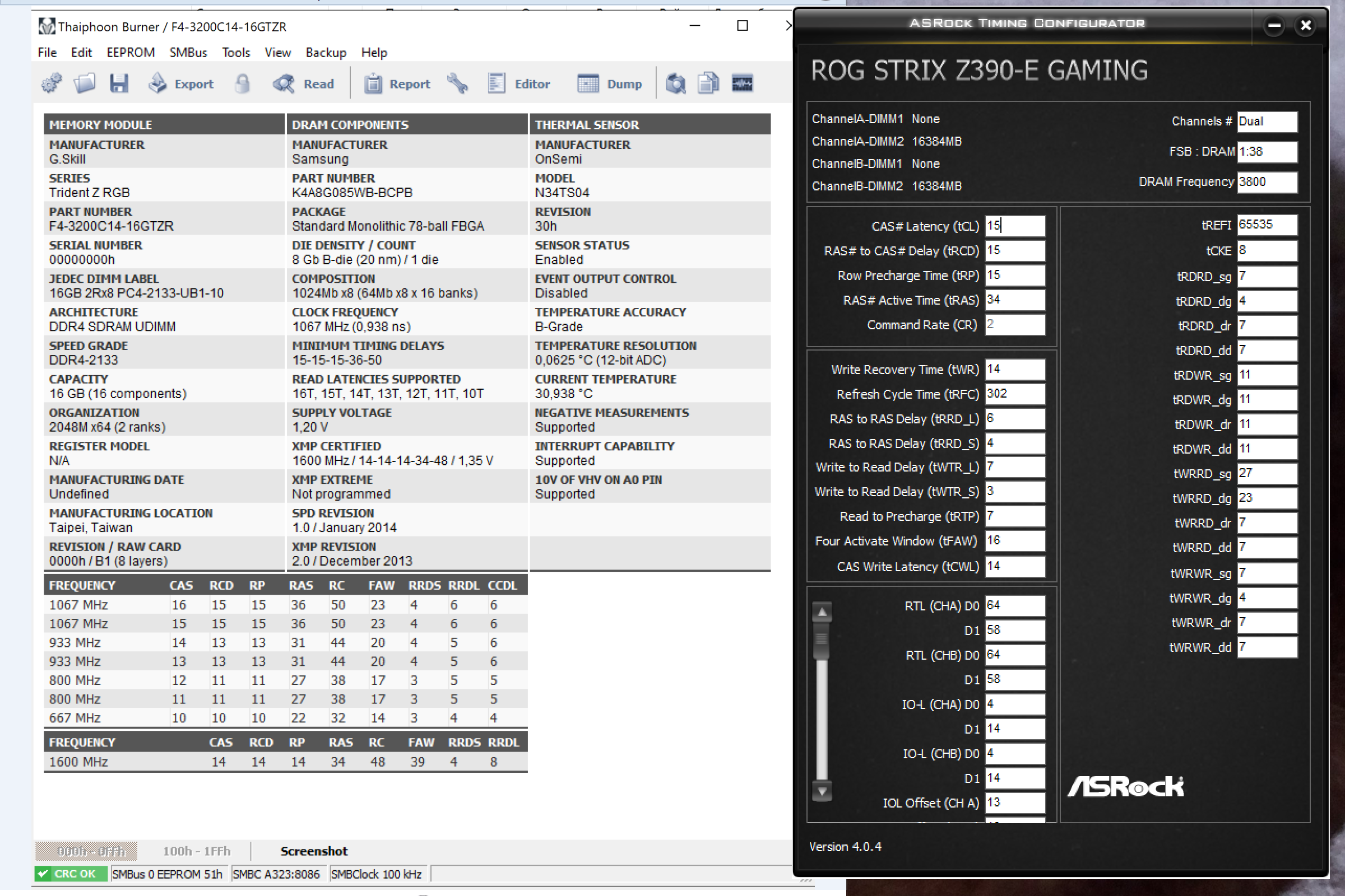 [img]Ссылка на скрин[/img] Для сбора статистики по установленным чипам памяти просьба прикладывать скрины программы Taiphoon Burner и указывать напряжения на DIMM, IO и SA![/color]