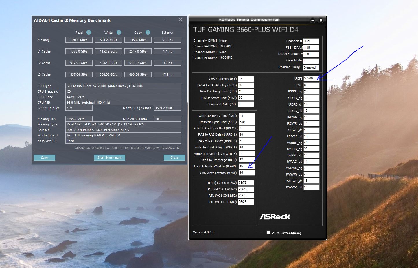 Вот что по умолчанию, только trefi прописал, больше ничего Просто когда тайминги ужал, стабильность системы пропала, в играх стали наблюдаться подергивания, подтормаживания, может так и оставить и не париться, черт с ними с задержками и скоростями Вообще, если честно, есть подозрение, что плата хоть и может разгонять память, но делает это не охотно, что частота в идеале для нее 3200 это самое оно Уже подумывал плату поменять на Z690