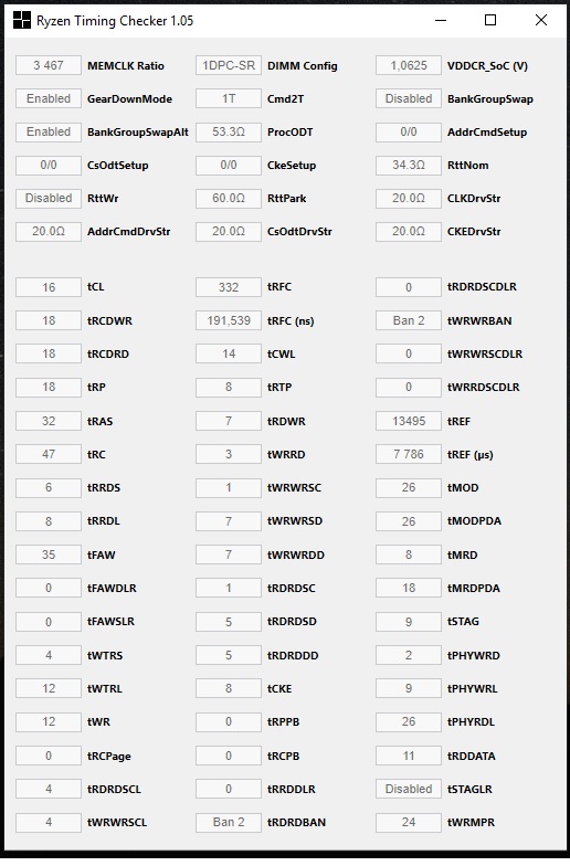 Кстати да. Самое простое первый два - GearDownMode попробуй включить, и CMD rate 2T поставить, они помогут стабилизировать частоту. А в остальном всё так, калькулятор никак не догма, память вся разная, процы\материнки тоже. Принципы на которых оно основано - общие, но у меня было что RTT приходилось крутить на одинаково ОЧЕНЬ отборных модулях.