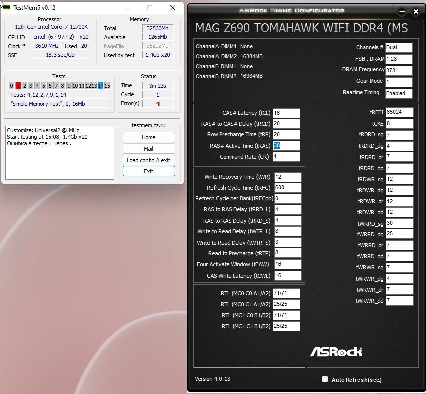 В биосе вручную поставил соответственно первичные тайминги и выставил Gear1, фикс вольтажа на 1.35 и больше ничего не трогал В какую сторону копать, что бы избавиться от ошибок?