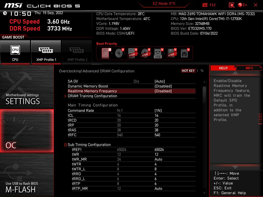 AMT - Asus MemTweakit Asus MemTweakIt 2.02.44 При настройке памяти в BIOS ставим ОБЯЗАТЕЛЬНО MRC Fast boot=disable (включаем при этом режим тонкой тренировки, если же выставим enable, то включаем режим грубой тренировки). Оптимально при разгоне памяти использовать в биосе множитель памяти 133, а не авто или 100, что даст возможность создать комфортные условия для контроллера памяти в процессоре и снизить напряжения ио и са ! Недаром в Jedec шаг между спидбинами именно 133, а не 100! Для плат с Alder Lake напряжения VDD и VDDQ на память могут отличаться не больше, чем на 300 мВ. Для плат на основе логики z690 и b660: VDD>VDDQ VDDQ>=VDD-300mV(0.3V) Лучше на VDDQ не превышать 1.25V. Вполне возможно 1.30V. MSI дает зазор до 1.40V. Для таймингов должно выполняться требование: _dr=_dd