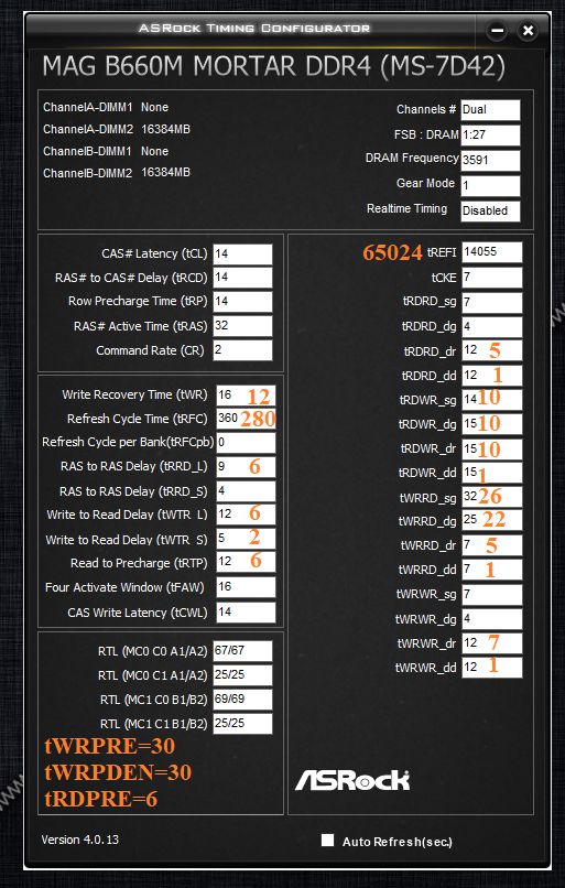 Таблица tRFC от Reous v26