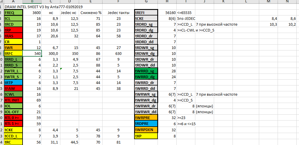 Таблица tRFC от Reous v26