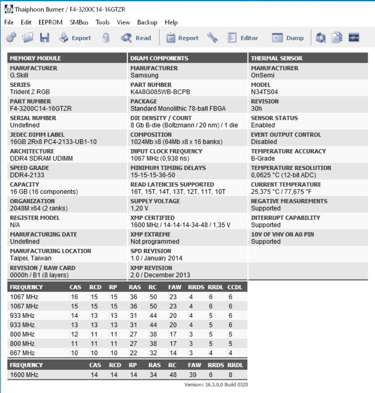 [img]Ссылка на скрин[/img] Для сбора статистики по установленным чипам памяти просьба прикладывать скрины программы Taiphoon Burner и указывать напряжения на DIMM, IO и SA![/color]