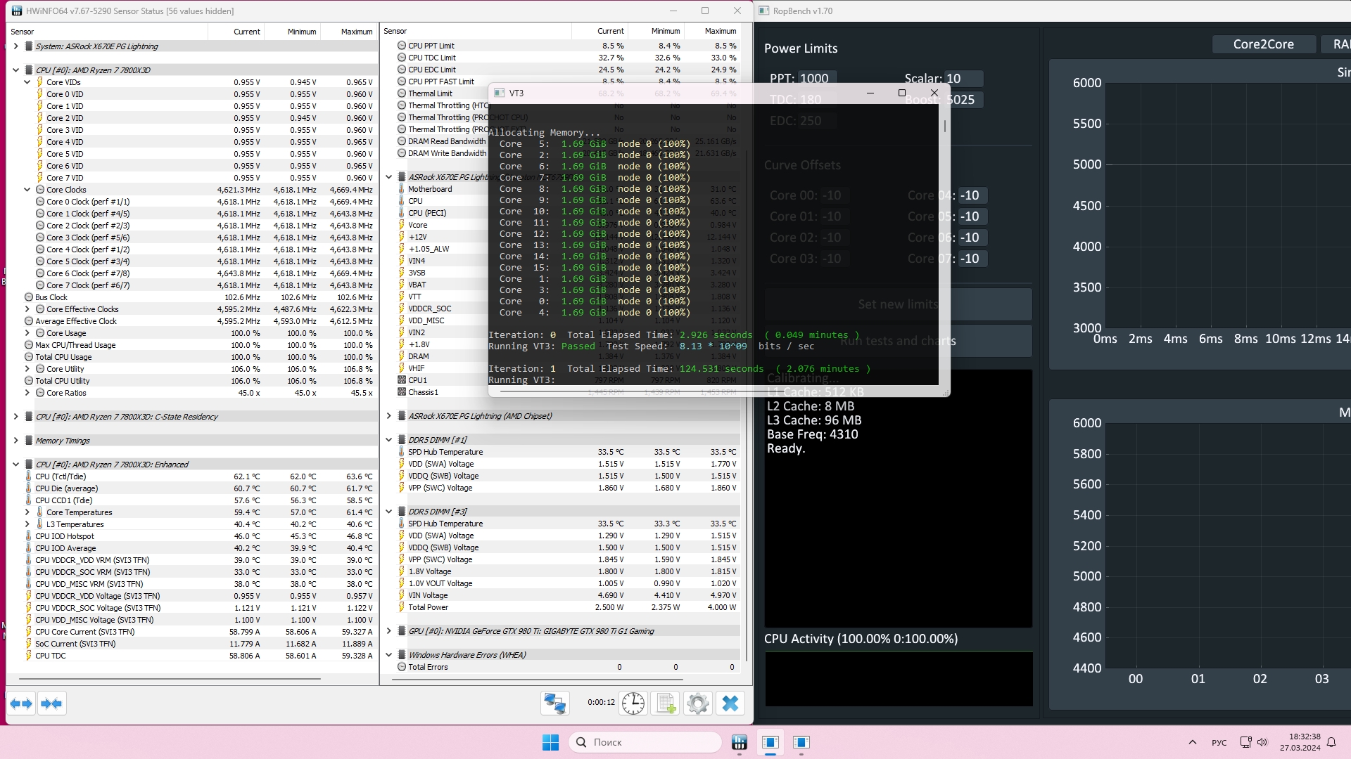 Добавлено спустя 3 минуты 4 секунды: И да, как сказали выше GDM выключить, он душит нормально так. Еще вижу 54 градуса на плашках под нагрузкой, это многовато, возможно ошибка именно изза этого. Возможно стоит подумать над доп обдувом, хотя бы на время тестов, что бы исключить этот момент.