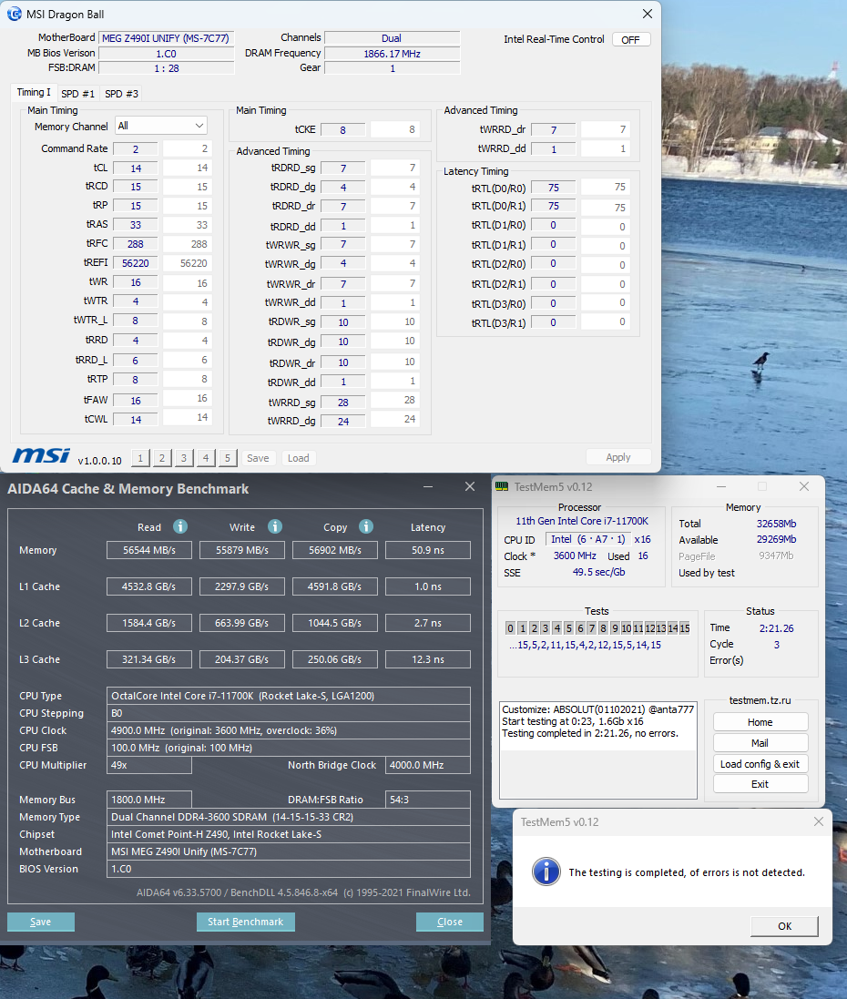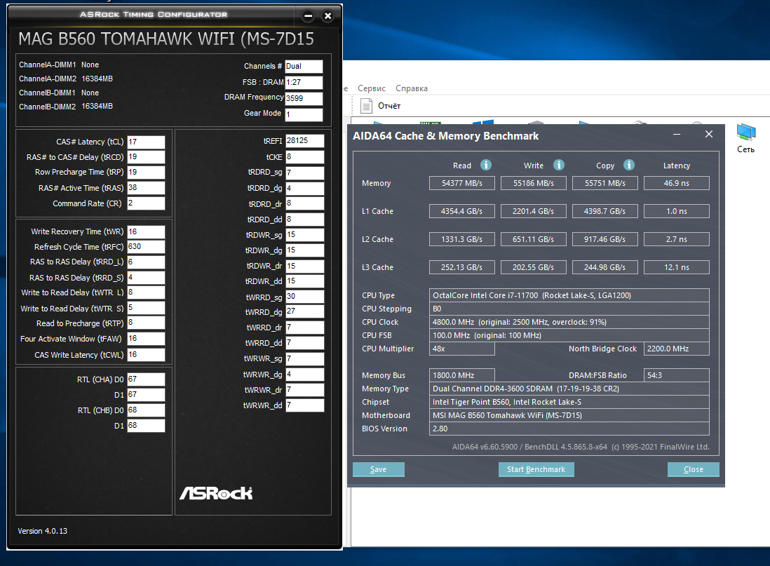 moonwolf у тебя неверная тренировка. Поставь в биос Round Trip Latency - Enabled и задержка станет меньше, а пропускная способность повысится. На MSI этот параметр называется немного иначе, поиском по форуму найдёшь, этот вопрос уже обсуждали. На моём 11700K и двурангах бидай 2х16Гб получилось без поднятия напруги разогнать до 3733, мне хватает.