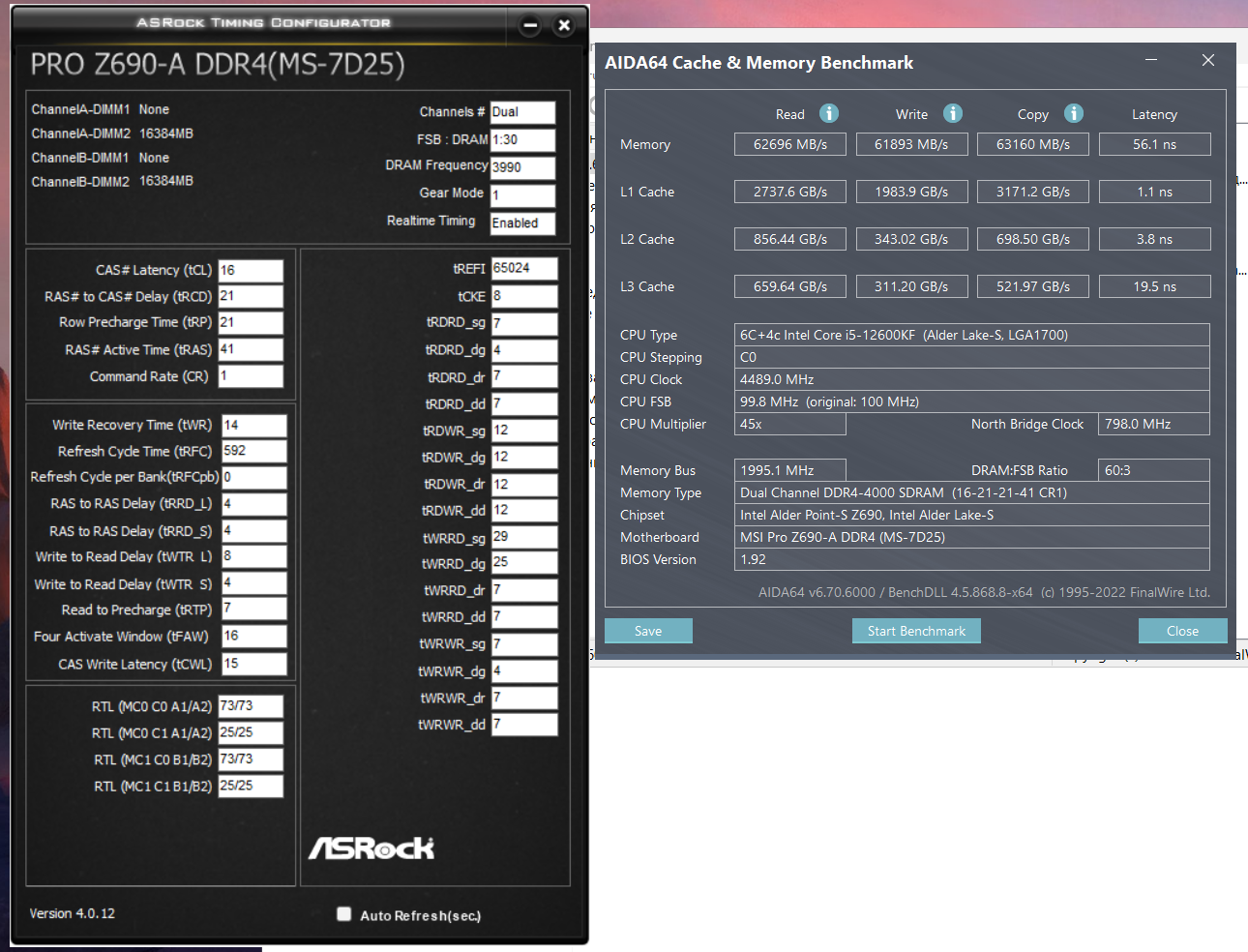 Мать - msi pro b660m-a wifi, процессор i5-12400f. Память по скрину...