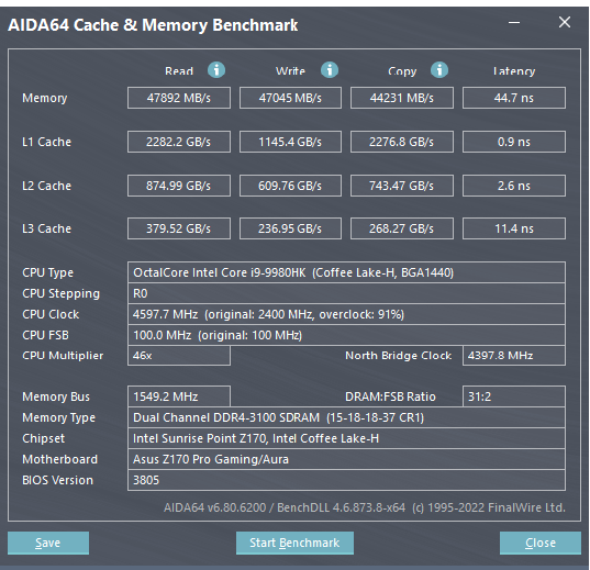 CPU Name: Intel® Core™ i7-7740K CPU @ 4.30GHz Motherboard Model: MSI X299 GAMING PRO CARBON AC (MS-7A95) Total Size: 8192 MB Type: Single Channel (64 bit) DDR4-SDRAM Frequency: 2750 MHz - Ratio 1:31 Timings: 21-31-31-63-2 (tCAS-tRC-tRP-tRAS-tCR) Slot #1 Module: G.Skill 8192 MB (DDR4-2137) - XMP 2.0 - P/N: F4-3200C14-8GVR
