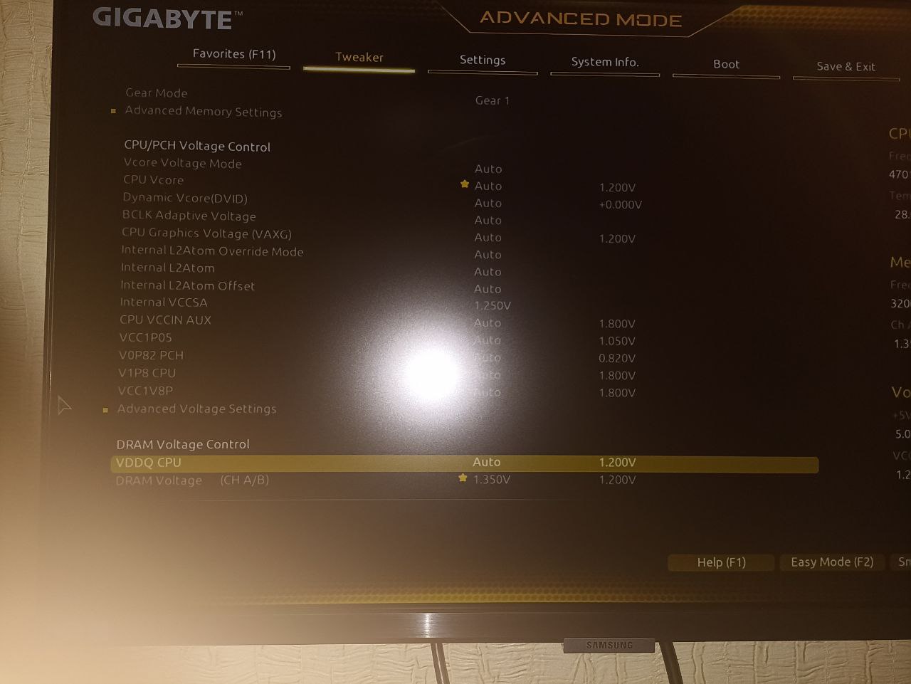 Вроде еще надо настроить показатель: DRAM vdd/vddq - 1.250 но такого показателя не нахожу, есть похожий: VDDQ CPU его оставил на - Auto, это не одно и тоже?