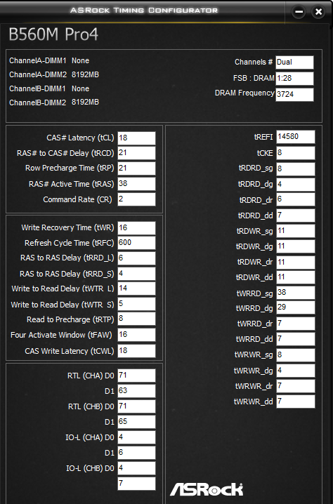 Приветствую. Вопрос от новичка, сильно не бейте. Железо простое - мать Asrock B560M Pro4, проц I3 10105f, оперативка Kingston Fury Beast KF432C16BBK2/16 CL16-18-18-36 1.35v (чипы Samsung C-Die). Я так понимаю, C-Die это вообще печаль-беда? Третичные тайминги не трогал. Удалось разогнать до 3733 18-21-21-38 1.35v , выше не хочет или я не могу, всё же в первый раз делаю. Посмотрите на скрин AIDA64, нормально для этого железа? И второй вопрос, а есть вообще смысл гнать память при таком проце? )