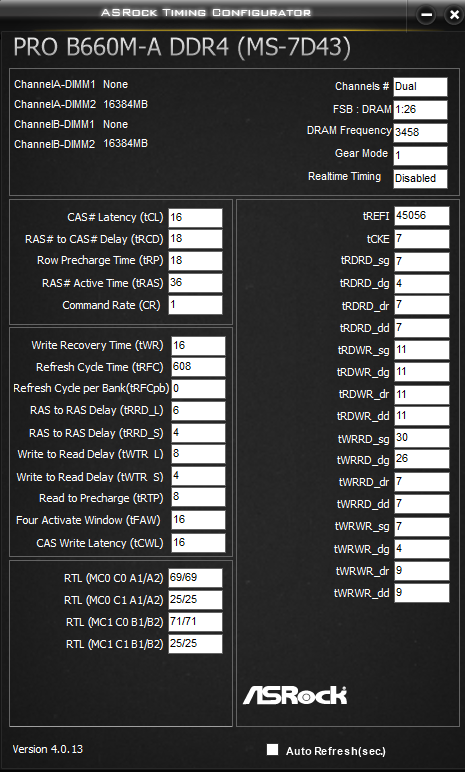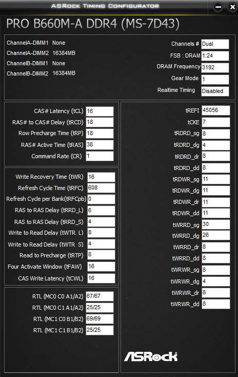 AMT - Asus MemTweakit Asus MemTweakIt 2.02.44 При настройке памяти в BIOS ставим ОБЯЗАТЕЛЬНО MRC Fast boot=disable (включаем при этом режим тонкой тренировки, если же выставим enable, то включаем режим грубой тренировки). Оптимально при разгоне памяти использовать в биосе множитель памяти 133, а не авто или 100, что даст возможность создать комфортные условия для контроллера памяти в процессоре и снизить напряжения ио и са ! Недаром в Jedec шаг между спидбинами именно 133, а не 100! Для плат с Alder Lake напряжения VDD и VDDQ на память могут отличаться не больше, чем на 300 мВ. Для плат на основе логики z690 и b660: VDD>VDDQ VDDQ>=VDD-300mV(0.3V) Лучше на VDDQ не превышать 1.25V. Вполне возможно 1.30V. MSI дает зазор до 1.40V. Для таймингов должно выполняться требование: _dr=_dd