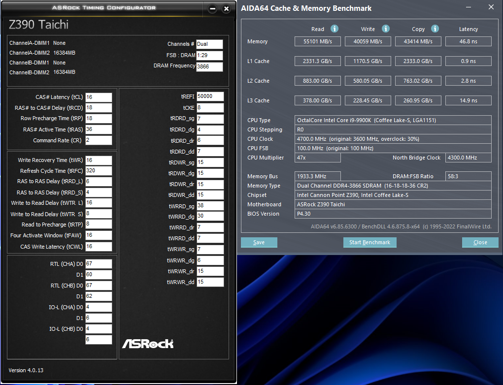 Сейчас на 3866 и настроено, что видно по скриншоту. Возможно я пропустил какую-то предварительную настройку или неправильно ее сделал. Поставил XMP, увеличил напряжения SA / IO до рекомендованных, поднял первичные тайминги и искал стабильную частоту. Ей и оказалась 3866. С "таблицами" не совсем разобрался, буду рад, если тыкнете носом на них. Поэтому делал по переведенному гайду Scandaal из шапки.