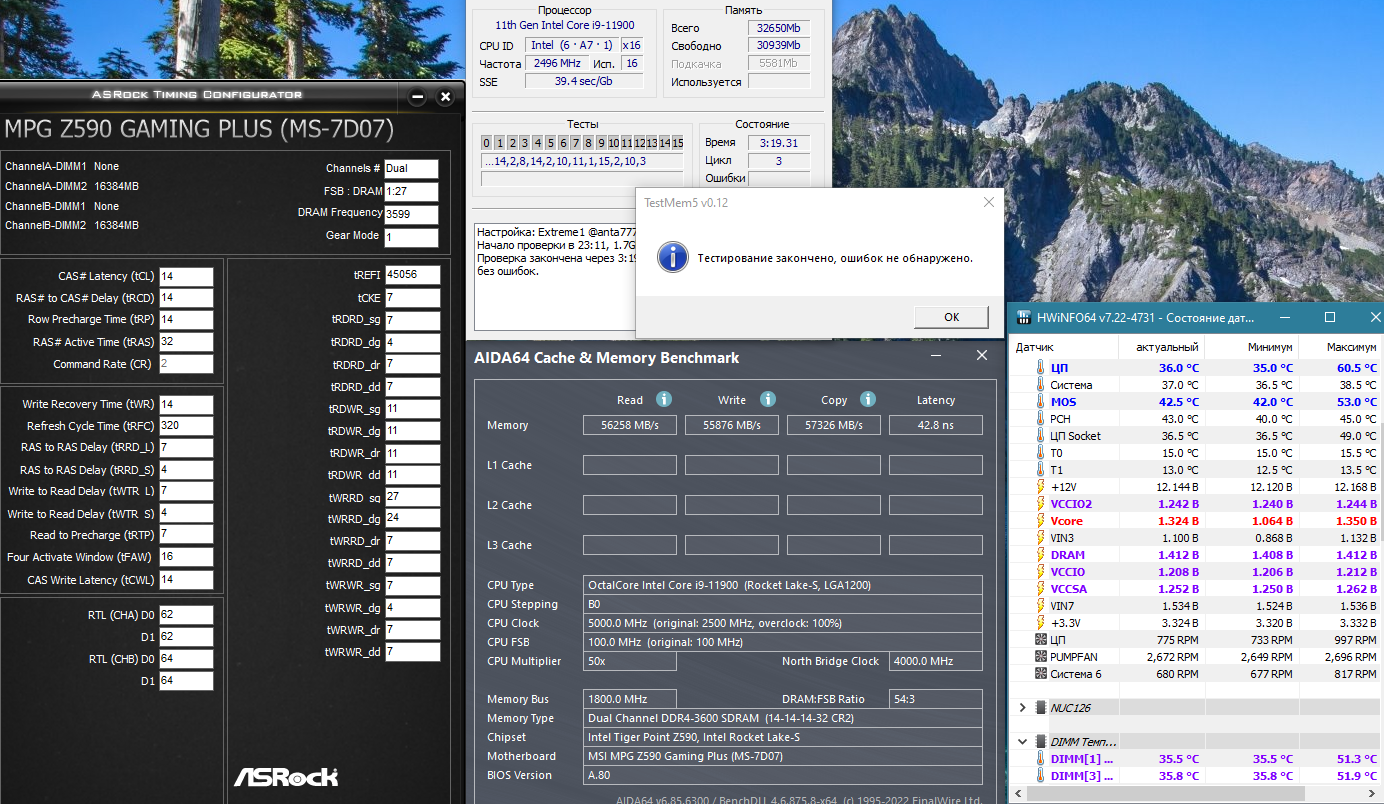 Частоту 3166 cl14 берет без ошибок. На 3200 пробовал диапазон напряжений: 1,41-1,45. IO/SA= 1,1 (по таблице). Всегда начинаются ошибки на 1-й/2-й минуте.