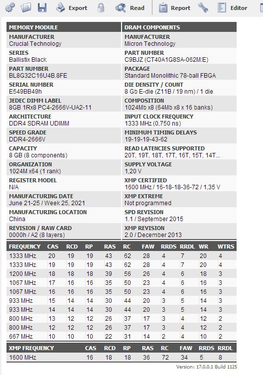 CPU Name: Intel® Core™ i7-7740K CPU @ 4.30GHz Motherboard Model: MSI X299 GAMING PRO CARBON AC (MS-7A95) Total Size: 8192 MB Type: Single Channel (64 bit) DDR4-SDRAM Frequency: 2750 MHz - Ratio 1:31 Timings: 21-31-31-63-2 (tCAS-tRC-tRP-tRAS-tCR) Slot #1 Module: G.Skill 8192 MB (DDR4-2137) - XMP 2.0 - P/N: F4-3200C14-8GVR