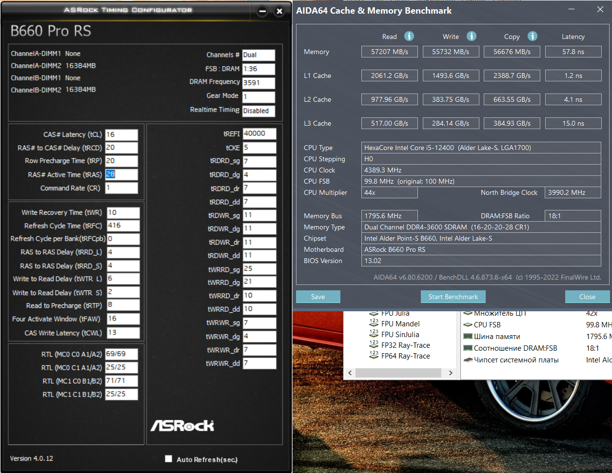 После замены 12900K на 13900Ks, память поехала с 4000mhz => 4266mhz, на тех же таймингах, но большими напругами, раньше выше не стартовала: VDDQ - 1.275 V => 1.3 V SA - 1.31 V => 1.36 V VDRAM - 1.45 V => 1.52 V