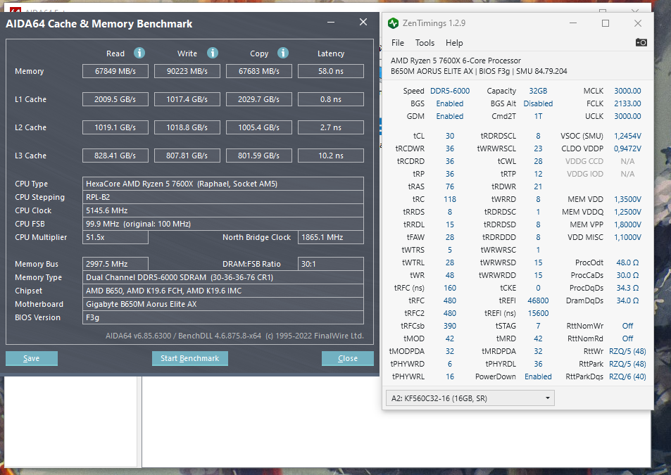 Здравствуйте, пытаюсь разогнать память на мини пк с zen3+ 6900hx. Память на хуниксах, две по 16. Напряжение менять нельзя, но частоту берет 5400 на 40х таймингах. Аида показывает 54-56к на чтение запись копирование. Задержка 64.4. Это норм? Я думал в районе 70к будет. Еще хотел узнать какая настройка может влиять на динамическое снижение/повышение частоты памяти. В простое частота снижается. Хотелось бы отключить. Заранее спасибо!