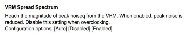 Добавлено спустя 1 минуту 43 секунды: VRM Spread Spectrum, а это что за параметр который рекомендуется отключать при разгоне ?