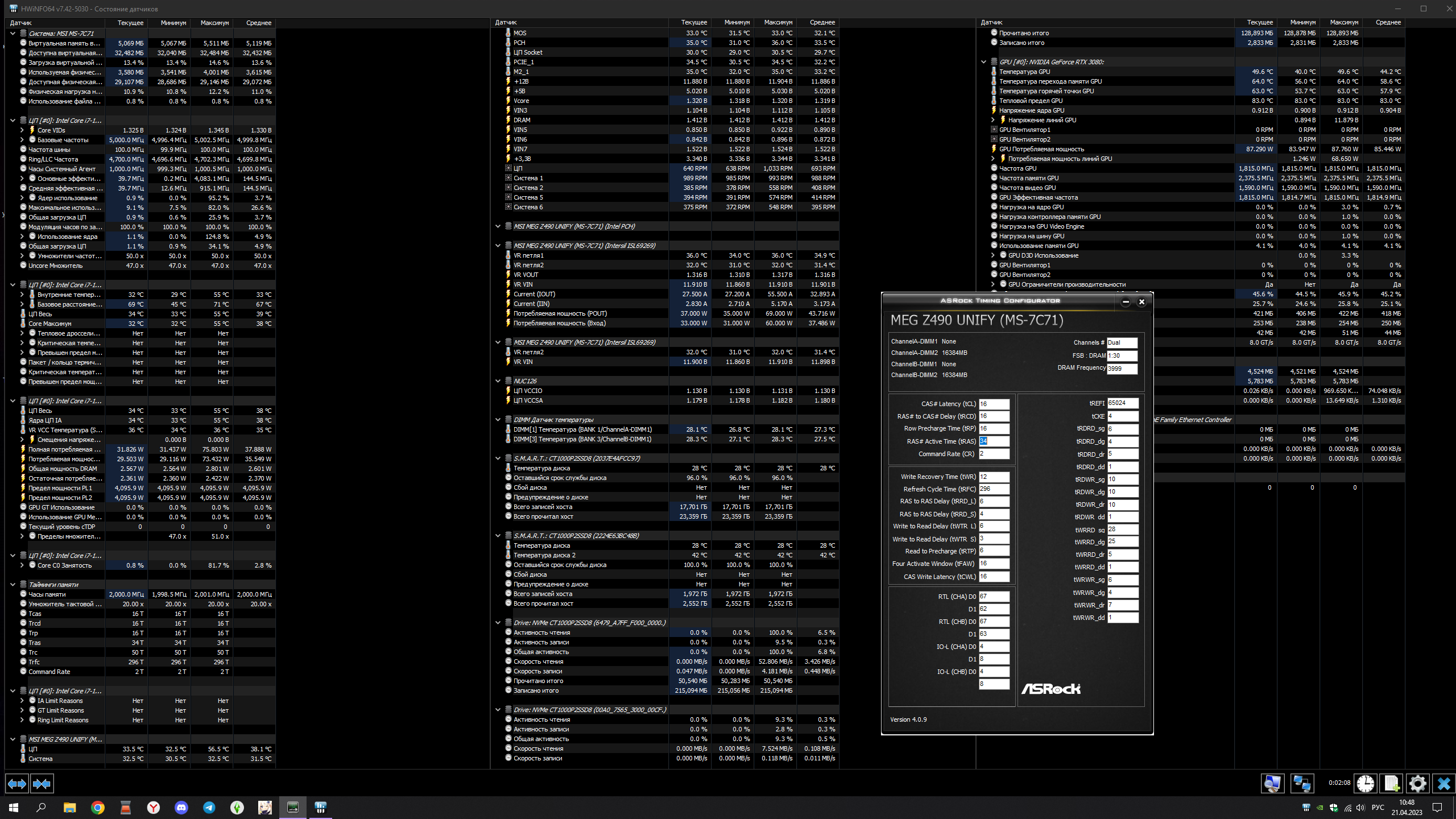 Память Kingston Fury на чипах Нанья, 2x16 двухранговая, по умолчанию идет 3200 16-18-18 1.35v, получилось немного ее разогнать, но что удивительно, по частоте память не идет ни в какую, а вот первичные тайминги удалось поджать неплохо, для этого пришлось поднять напругу до 1.410v