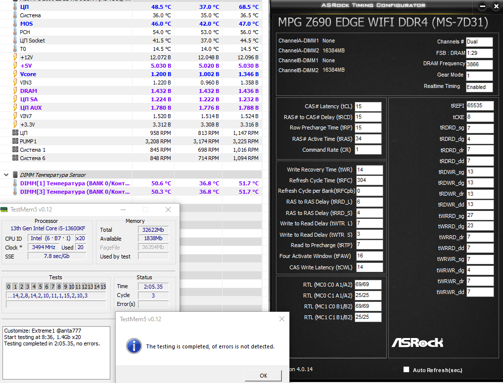 Привет всем! что лучше g1 сl15 3866 cr1 или g1 cl16 4000 cr2 ? у меня только тест завис на 3866, табличка вышла мол прошел раньше времени, а система нагружена тест продолжался. Может поправить что надо?