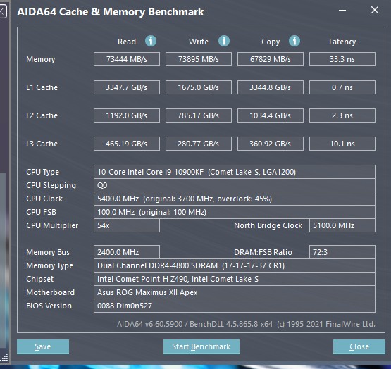 Латентность отличная (этот тест по умолчанию отключает префетчеры, чего не делает аида, поэтому результаты в нем честные). А вот псп я думал будет лучше, но всего на ~8% больше, чем у моей памяти на 3375 (4700 больше на ~39%). Может из-за таймингов?