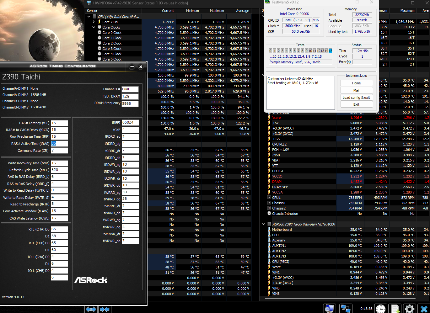 ну как безопасно... на профильных баликах при 3866 -1,44-1,45 при прогоне TestMem5 - радиаторы памяти, в частности в верхних их частях, прогревались до 52 по цельсию (через пирометр) и ето при том что на морде профильного корпуса стоит вода 360 +на радиаторе воды еще одна из двух 140 вентилей дула в сторону планок