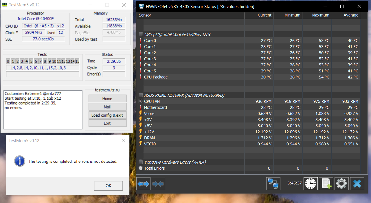 1. For memory stability test run TM5 with Extreme Anta777 config and pass it completely (For 16GB RAM test runs for 2 hours / 32GB runs for 4 hours / 64GB runs for 8 hours). Timings with which most of the errors are associated - tCL / tRCD / tRFC / tREFI / Command Rate = 1, also a huge number of errors when running the test can be associated with a hard training RTL-IOL 2. Go to reduce SA / IO, for this use OCCT, test CPU + SSE + Large + Extreme + Variable for 30 minutes, I believe that this is the best test of memory controller stability, as during the test is a heavy load on the IMC, which allows faster to choose the correct values SA / IO voltage. Next, synchronously decrease SA / IO by 30 mV, for example, if it was 1.30V / 1.25V, then put 1.27V / 1.22V, then continue to reduce to the lowest stable values