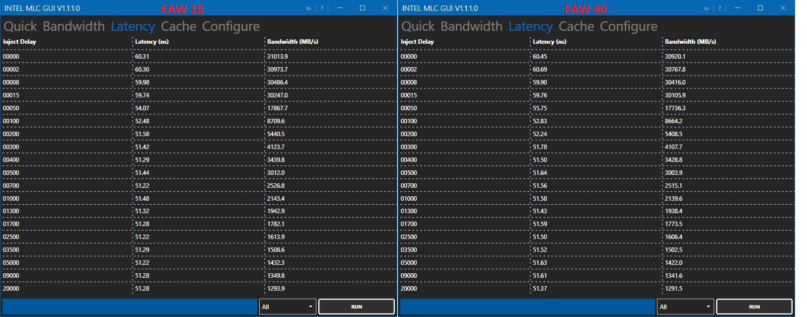 Ну и, как хочешь крути, latency всегда одинаково конская. Кто-то скажет что я криворукий, проц дно и всё остальное. Может оно и так, но суть в том что на мощных компах смысла ещё меньше это делать. Думаю, что 60 ns, что 40, нособой разницы нет. Лично я её не вижу на другом компе 10700К+3080 с 2666мгц сток тайминги vs 3200 ужатые, это никак не ощущается. Если у кого-то 200+фпс какая разница будет ли на 3-5 фпс больше или меньше. Скажете "щас бы фпс мерить.. плавность11!!!". По мне так фигня это всё. Можно провести аналогию - в норме у человека несколько сотен экстрасистолий в день, никто из не чувствует и не замечает, на плавность прогулки тоже не влияет.