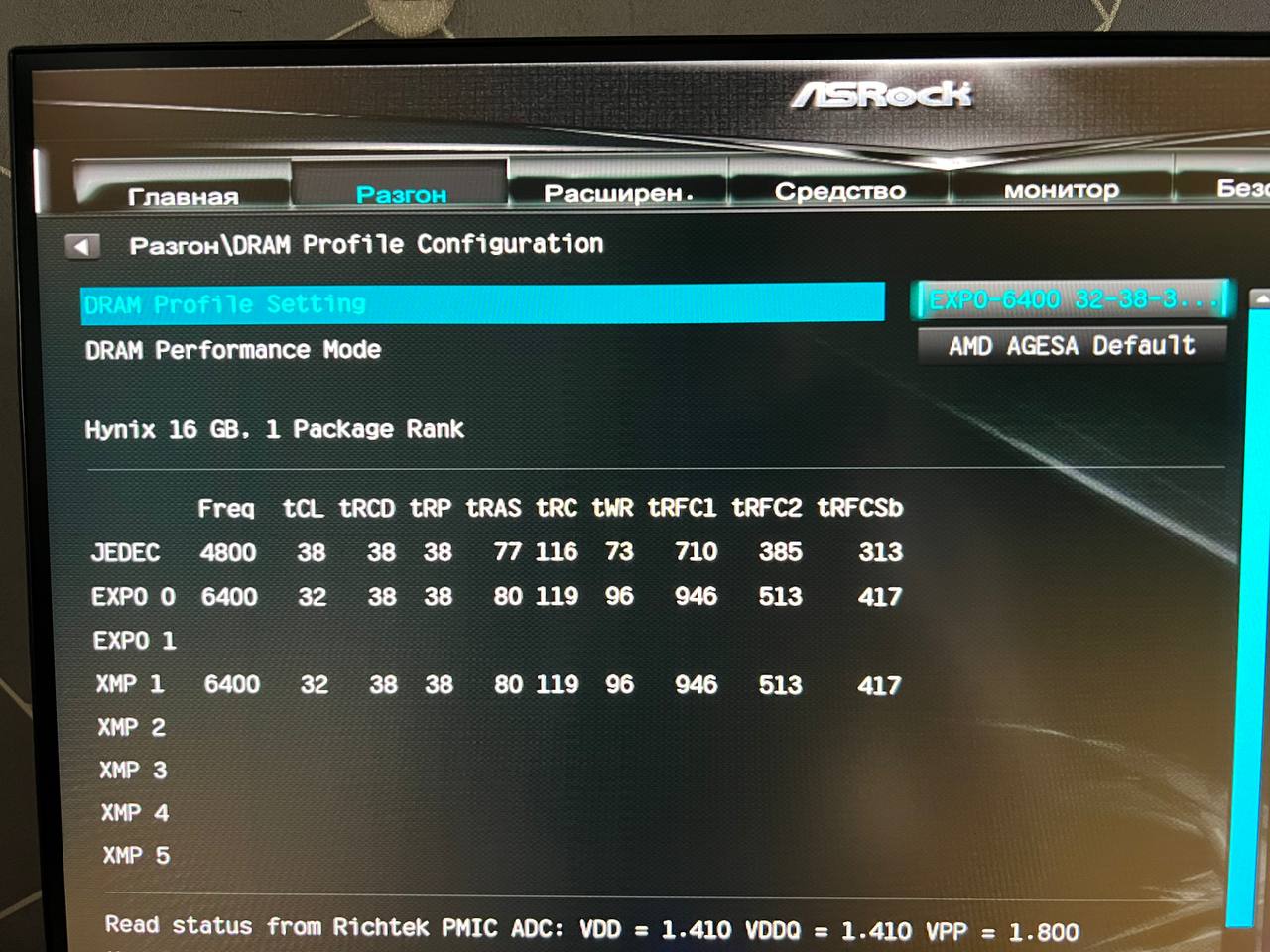 Всех приветствую! Собрал компьютер. Поставил разгон EXPO6400, так же применил некоторые изменения, как мне посоветовали в другом топике. (UCLK=MCLK, FCLK=2133) Материнка: ASRock B650M ЦП: Ryzen 7500F ОЗУ: KingBank A-die 6400 32gb
