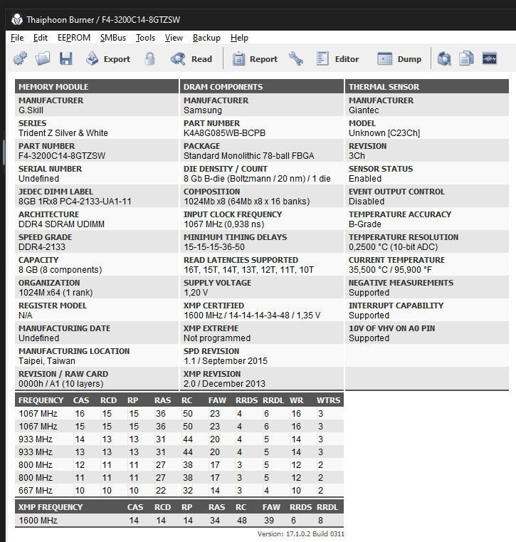 [img]Ссылка на скрин[/img] Для сбора статистики по установленным чипам памяти просьба прикладывать скрины программы Taiphoon Burner и указывать напряжения на DIMM, IO и SA![/color]