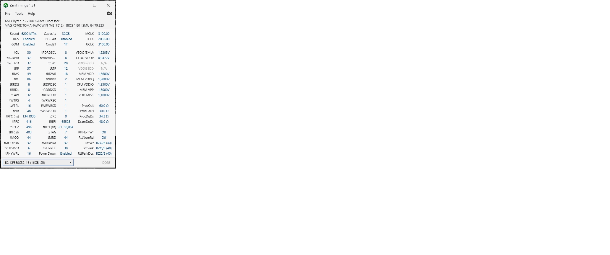 Скажите пожалуйста, имею оперативную память Team Group DDR5 T-Create Expert 32GB (2x16GB) 6000MHz CL30 (30-36-36-76) 1.35V (CTCED532G6000HC30DC0). Процессор 7800x3d, при включении expo на 6000 мгц и 1.35в, Latency показывает 70 в Aida 64, хотелось бы ужать тайминги, чтобы получить более низкую Latency (насколько я понял, для процессора 7800x3d нет особого смысла в более высокой тактовой частоте или это не так?). Какие параметры можно выставить, подкрутить в биос, чтобы тайминги или возможно частота стали лучше? В большей степени интересует именно Latency в Aida64. Заранее спасибо.