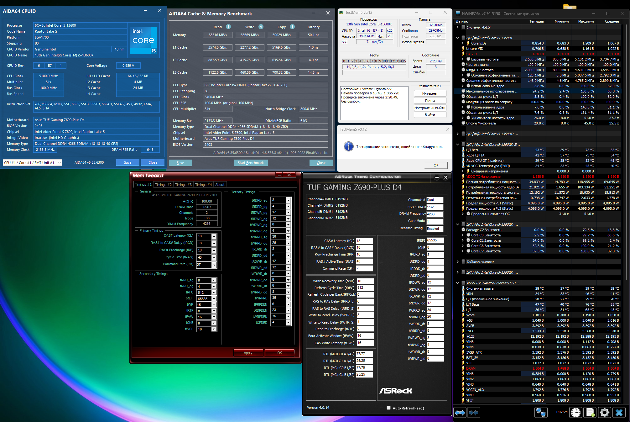 Не в претензию, но я сразу это предусмотрела. Все тесты что я делаю, все под вертушкой и со снятой крышкой, при этом каждый тест мониторится HWInfo. Температура не поднимается выше 43-45 градусов даже после 2 часов, а клин память иногда и на холодную ловила. На данный момент я сделала 2 теста примерно по 40 минут, один за одним с перезагрузкой, а потом ещё один с холодного старта. Сразу со всеми таймингами с трефи, пока вообще никаких вопросов, абсолютно стабильно. Поэтому в моём случае перегрев не причём, но я тоже слышала что бидоны очень не любят температуры высокие, видимо поэтому в FAQ и есть об этом пометка.