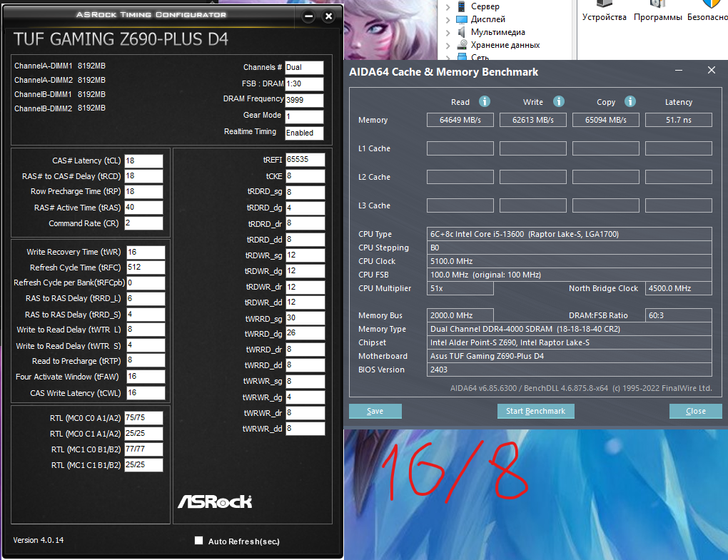 вчера достался комплект с разборок компов Crucial Ballistix White две по 8 частотой 2666 и 16-18-18-38 таймингами . Т.к мать и проц не поддерживают частоту выше хотелось попробовать поиграться с таймингами. Возможно ли отпустить какие значения основные?