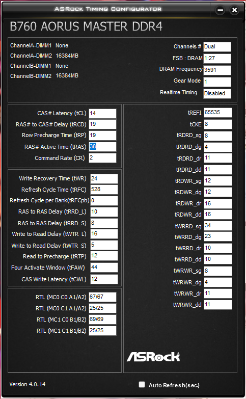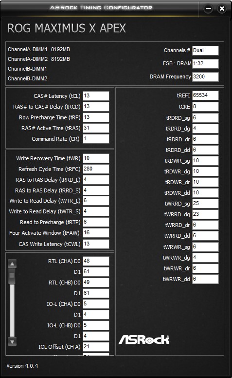Спасибо за прогу, в шапке вроде ток 13 версия, которая не работает. Пока остановился на этом. Тесты проходит. Напряжение пришлось поднять до 1.45, меньше не тестил, мб и проканает уменьшить. CR1 не заводится, даже на 15 тайминге. Есть ли смысл ради него поднимать до 16 или около того я хз... Так же я не трогал не че кроме MRC Fast boot=disable и таймингов tRFC tREFI, все на авто стоит. Где там настройка про тренировку памяти я пока не нашел. Есть смысл дожимать еще что либо? Ну кроме напряжения.
